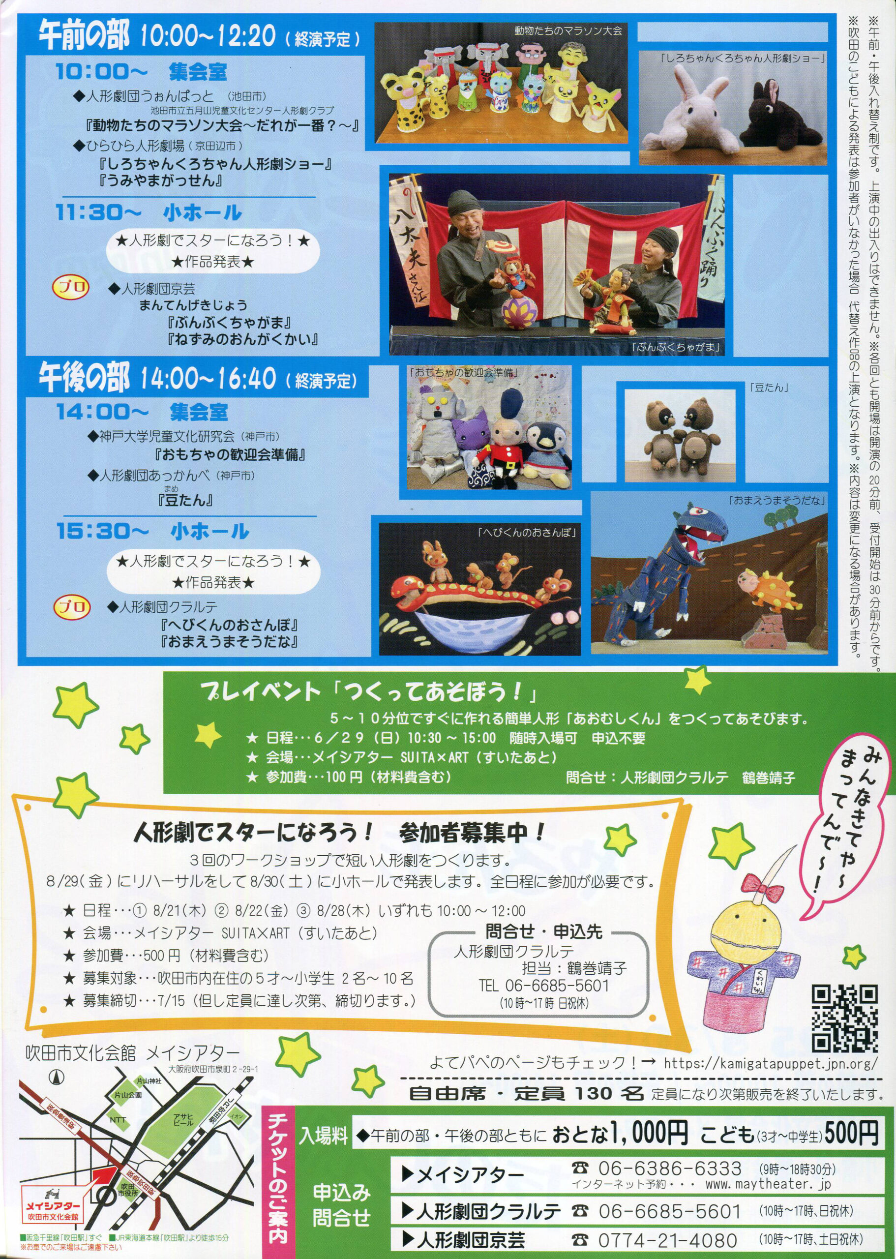- 人形劇団クラルテ 06-6685-5601(10:00~17:00 日祝休)