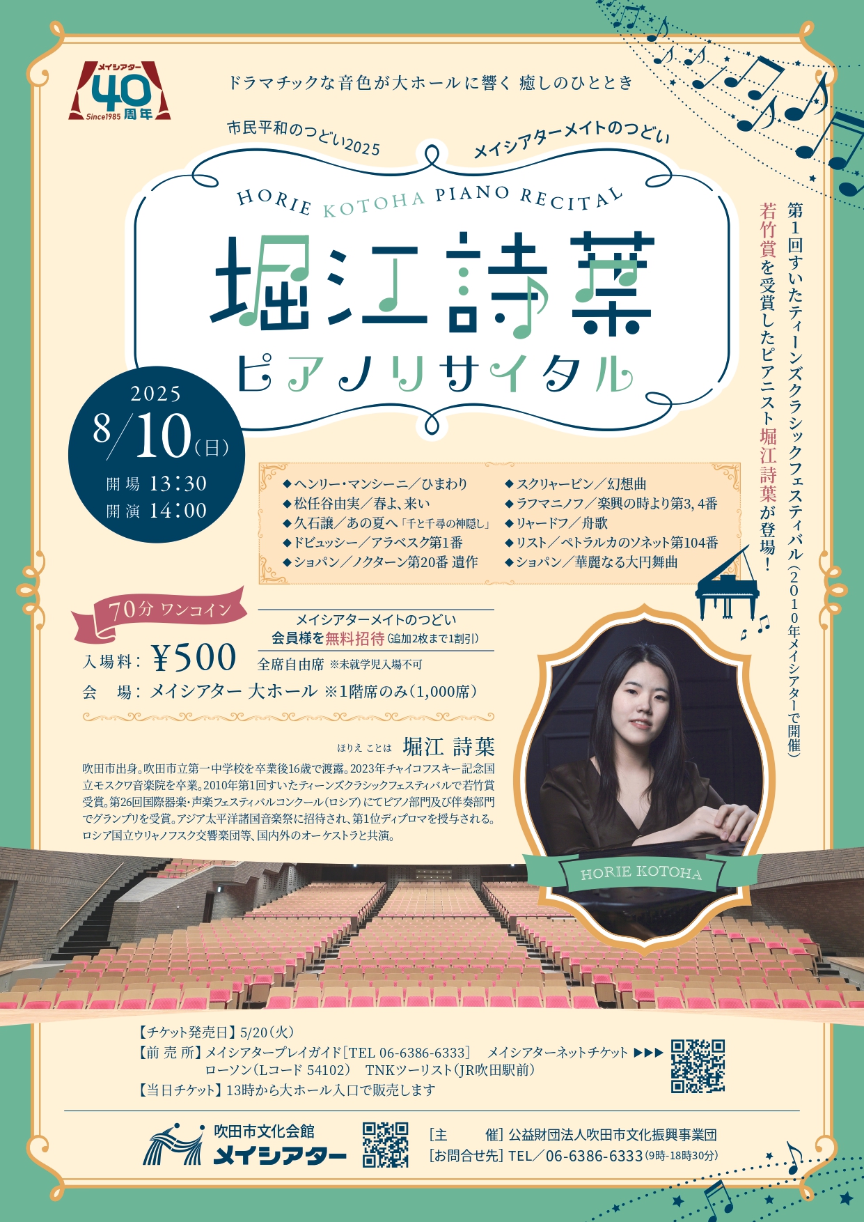 市民平和のつどい2025 メイシアターメイトのつどい堀江詩葉ピアノリサイタル