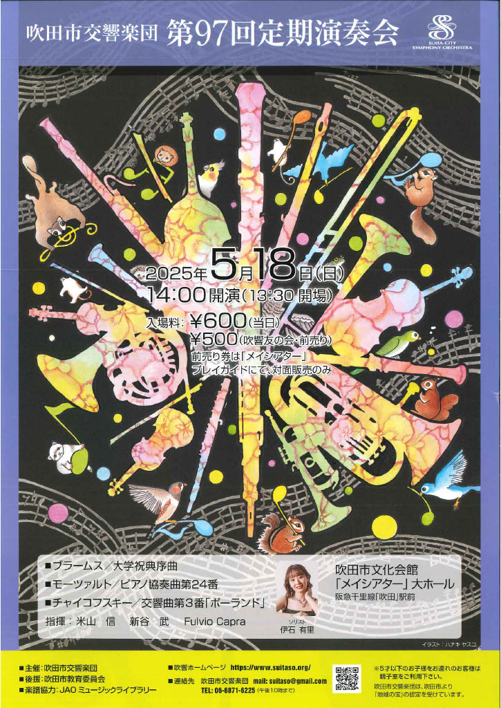 吹田市交響楽団 第97回定期演奏会 2025.04.232025.04.24 吹田市交響楽団 第97回定期演奏会日時2025年5月18日(日)14:00開演場所大ホール入場料前売・吹響友の会 500円 当日 600円お問い合わせ先06-6871-6225(午後10時まで)チラシPDFダウンロード URL Copied!