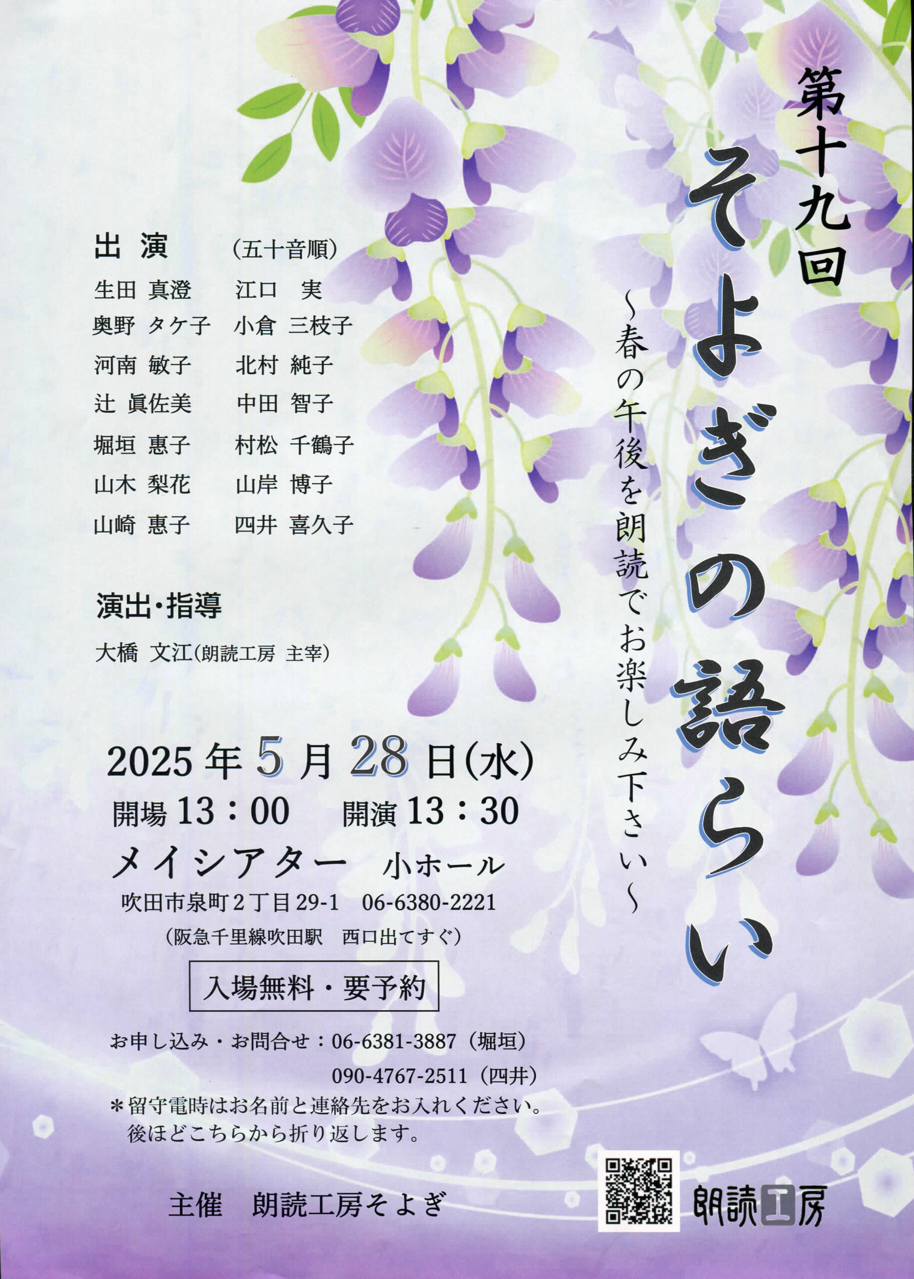 第19回 そよぎの語らい 2025.04.242025.04.28 第19回 そよぎの語らい日時2025年5月28日(水)13:30開演場所小ホール入場料無料(要予約)お問い合わせ先堀垣 06-6381-3887 四井 090-4767-2511チラシPDFダウンロード URL Copied!