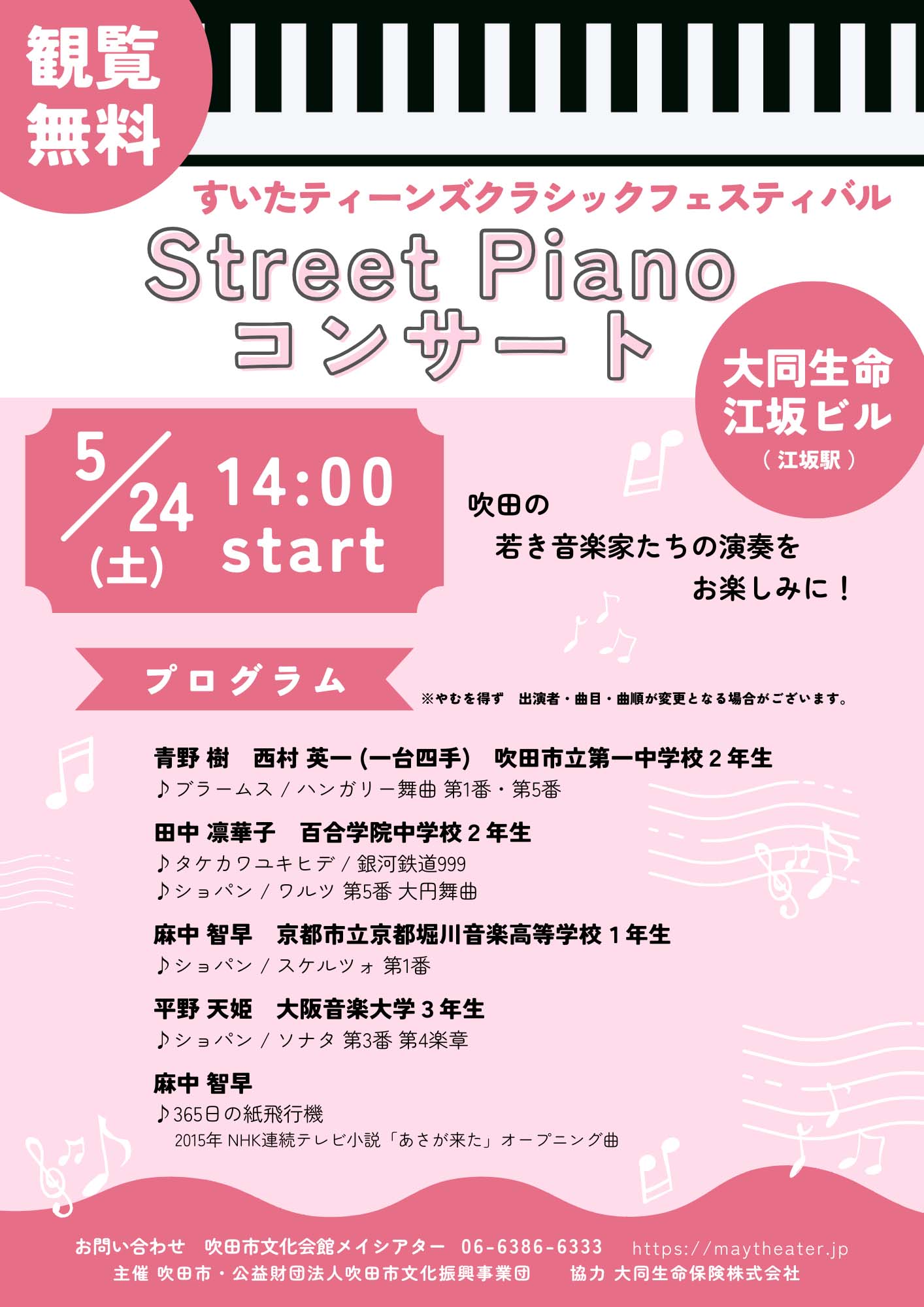 Street Piano コンサート 2025.05.02 メイシアター主催すいたティーンズクラシックフェスティバルStreet Piano コンサート日時2025年05月24日(土)14:00開演場所大同生命江坂ビル 日時・場所 日時 2025年5月24日(土)14:00開演 場所 大同生命江坂ビル チケット料金 観覧無料 ■主催 吹田市/(公財)吹田市文化振興事業団 ■協力 大同生命保険(株) ■本公演のお問合せ メイシアター 06-6386-6333(9:00~18:30) URL Copied!