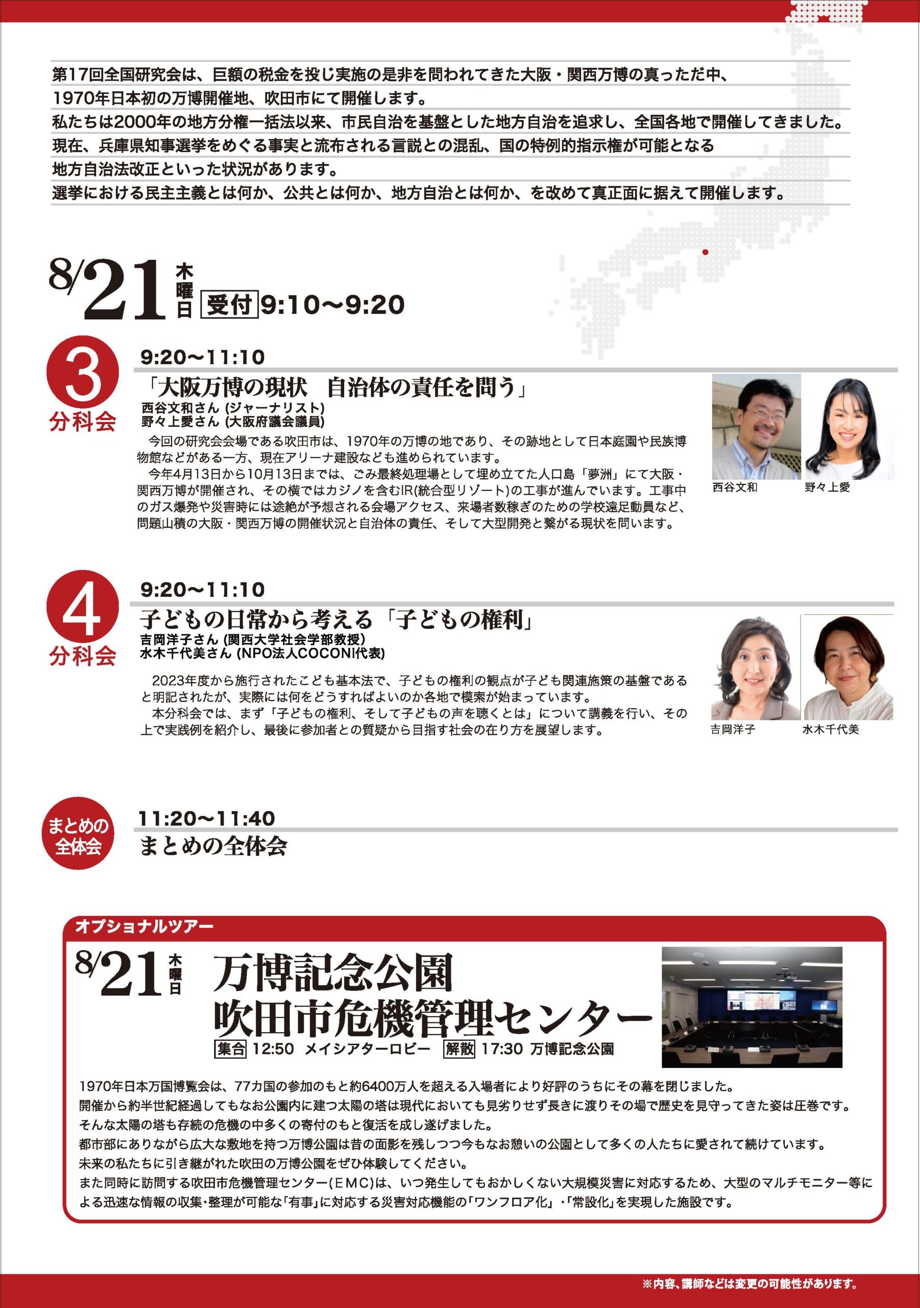 本分科会では、まず「子どもの権利、そして子どもの声を聴くとは」について講義を行い、その上で実践例を紹介し、最後に参加者との質疑から目指す社会の在り方を展望します。