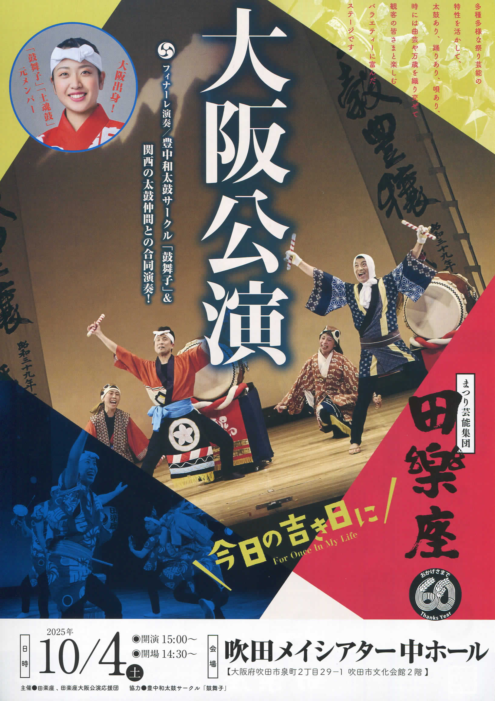 田楽座大阪公演 今日の吉き日に 2025.08.18 田楽座大阪公演 今日の吉き日に日時2025年10月4日(土)15:00開演場所中ホール入場料一般 4,000円 U-25・障がい者 2,500円 ※おやこ券他のチケットは田楽座へお問合せくださいお問い合わせ先田楽座 0265-78-3423(10:00~17:00)チラシPDFダウンロード 田楽座公式サイト URL Copied!