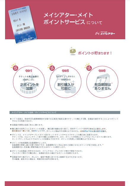 メイシアターでは、良い音楽、楽しい演劇、伝統ある古典芸能など、すぐれた芸術をみなさまに楽しんでいただけるように、会員組織のなお一層の充実を図り、新規会員を募集いたしております。