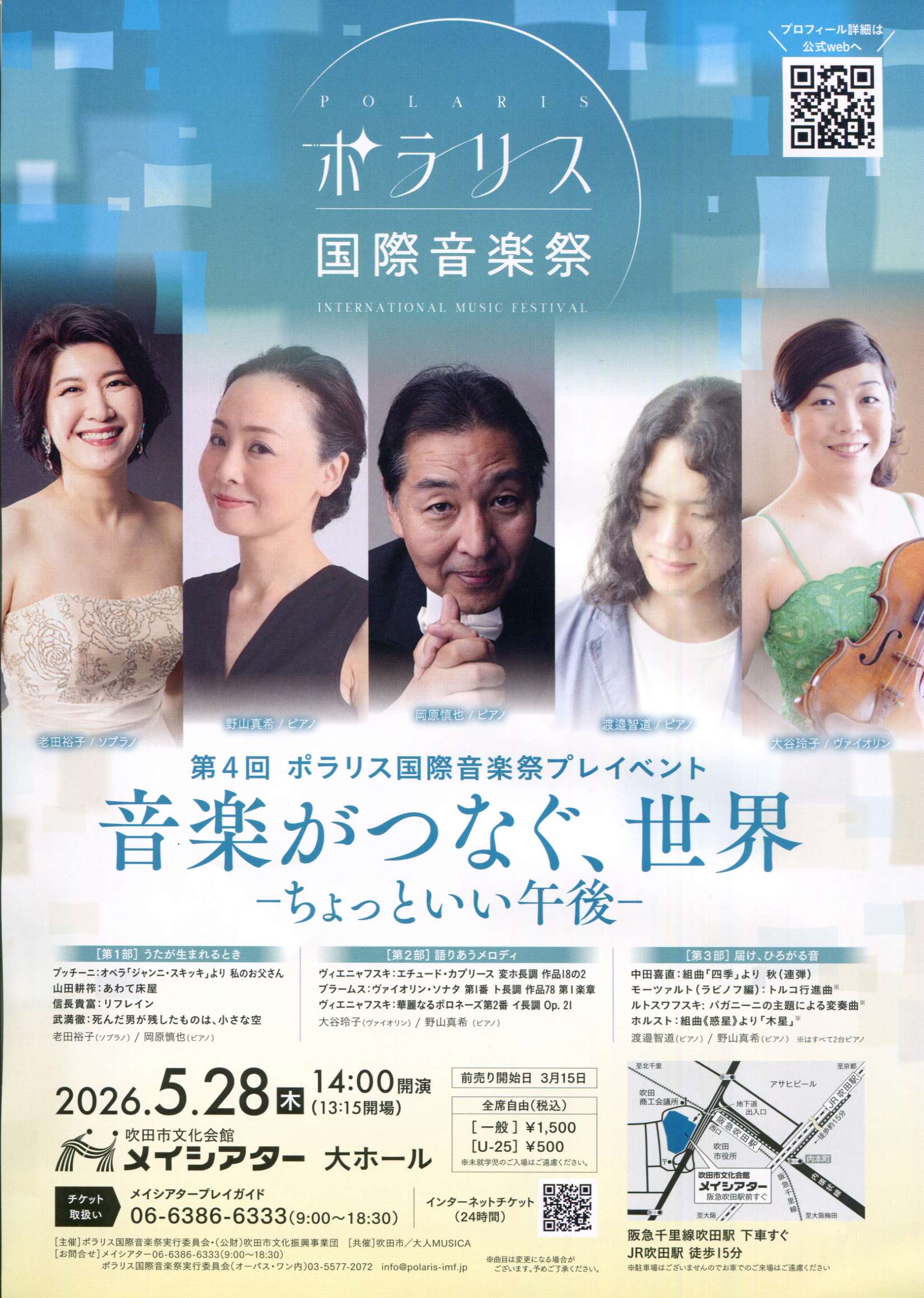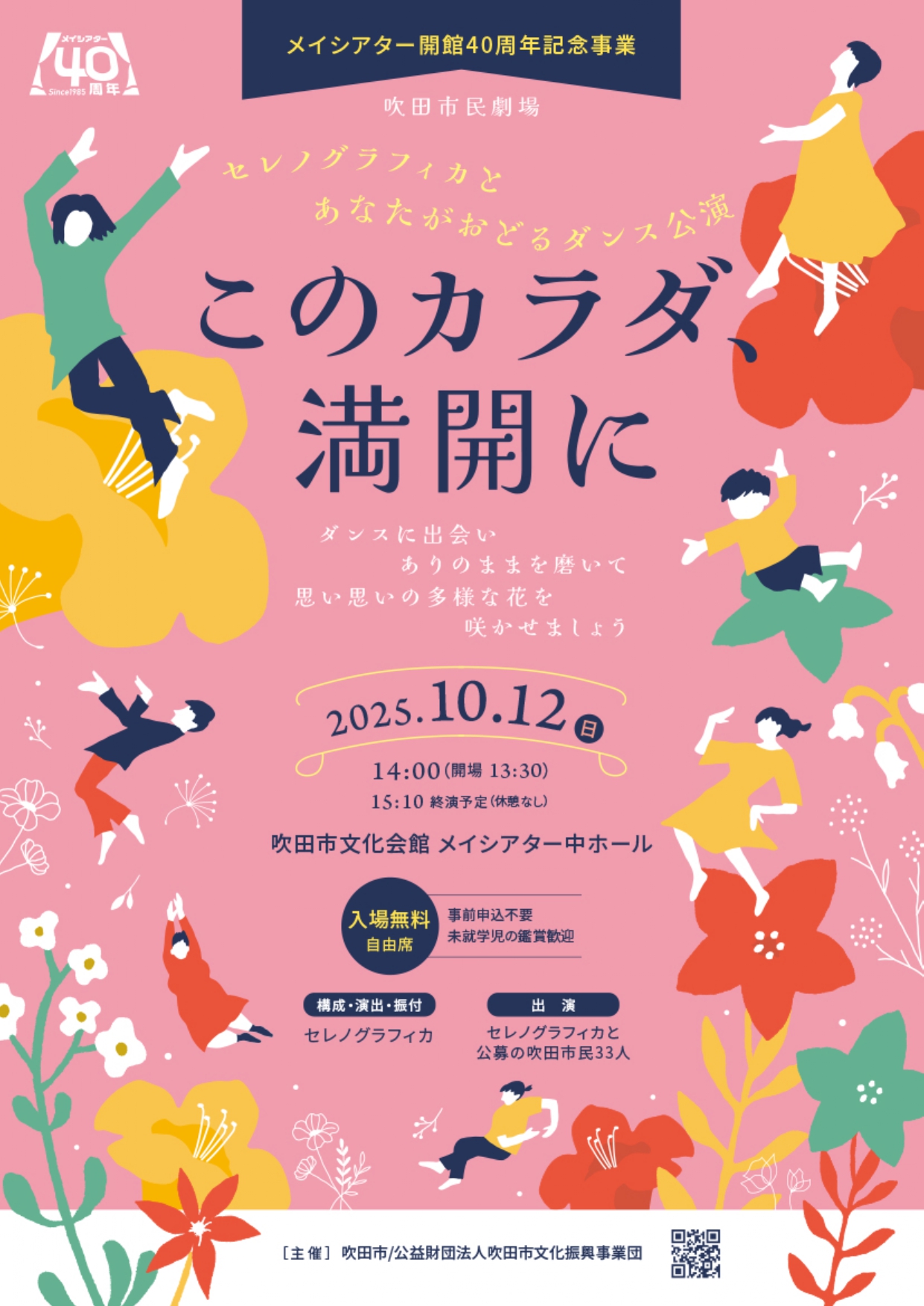 メイシアター主催イベント 若手アーティスト育成事業 吉田簑悠がおくる 春休みはじめての文楽人形 2026年3月29日(日)①11:30~12:30 ②13:30~14:30 SUITA×ART(すいたあと) <メイシアター開館40周年記念事業> セレノグラフィカ とあなたがおどるダンス公演「このカラダ、満開に」 2025年10月12日(日)14:00開演 中ホール 桂ざこば三回忌追善 桂米朝一門会 2026年05月17日(日)14:00開演 中ホール 第4回ポラリス国際音楽祭 プレ・イベント 音楽がつなぐ、世界。ーちょっといい午後ー 2026年05月28日(木)14:00開演 大ホール フラメンコ×スパニッシュブラス 2026年6月19日(金) 14:00開演 中ホール 和太鼓松村組 吹田公演2026~彩波の響~ 2026年06月23日(火)15:00開演 中ホール 第11回 スーパークラシックアンサンブル特別演奏会 ライナー・キュッヒル氏を迎えて 2026年7月19日(日) 14:00開演 大ホール メイシアター・メイト入会のご案内 検索絞り込み 開催月 ジャンル 音楽 演劇 舞踊 伝統芸能 その他 場所 大ホール 中ホール 小ホール レセプションホール SUITA×ART リセット メイシアター主催公演のみ表示する 大ホール 中ホール 小ホール レセプションホール SUITA×ART 2026年02月 2026年03月 2026年04月 カレンダーはありません